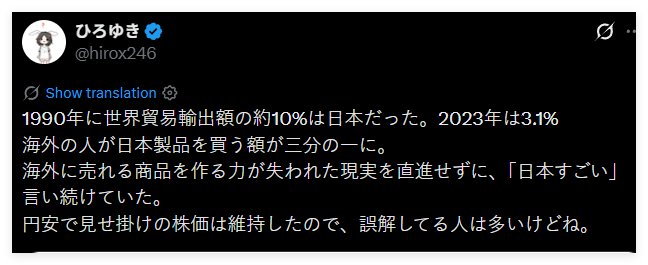 其中,他认为日本眼下最核心的问题是,海外对购买日本制造的商品已经失去了兴趣。